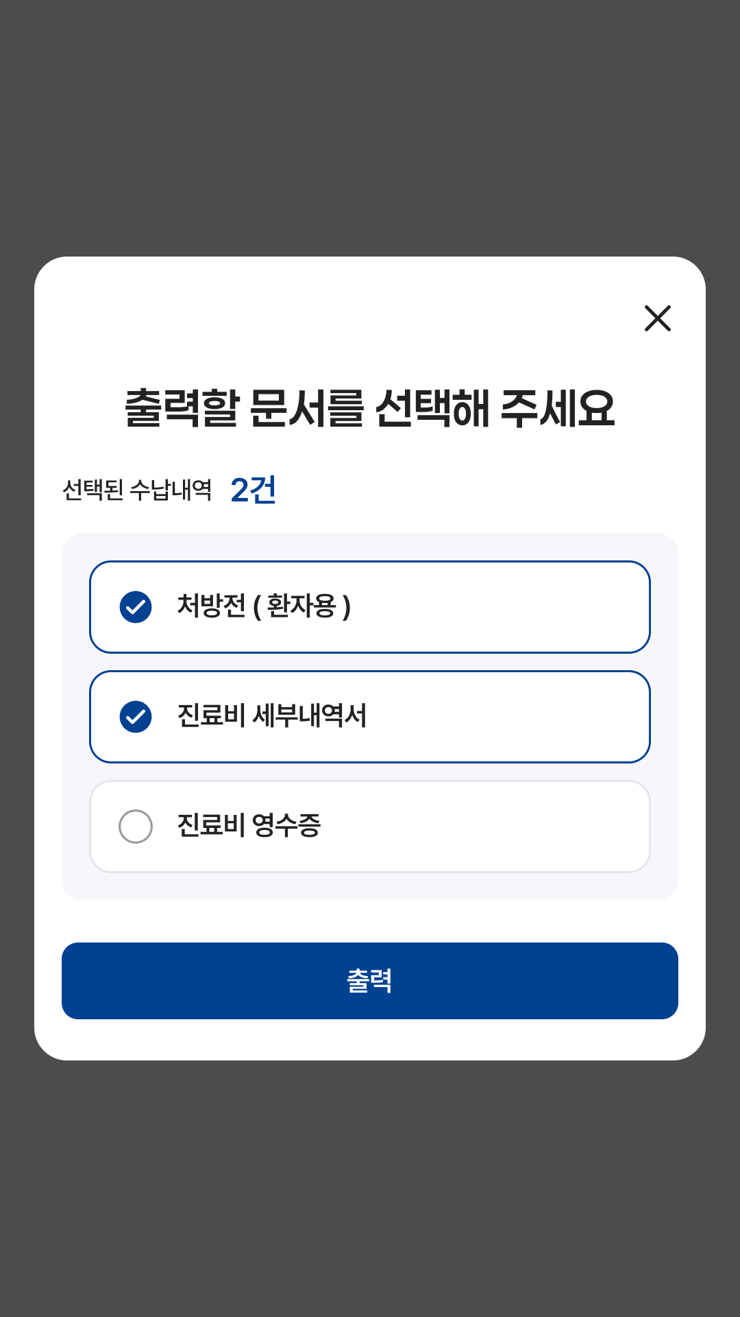라운드형 컴포넌트와 여백 배치를 통해 병원 환경에 어울리는 온화한 분위기를 만들었습니다.